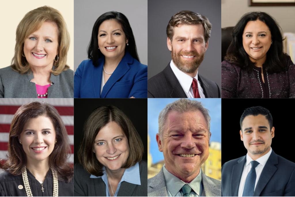 Judicial contests span Courts at Law Nos. 1 through 15, with multiple contested benches, including races featuring Cleophus “Cleo” Marshall III, Victoria Cruz, Maritza Perez-Stewart, Jessica A. Gonzalez, Lauren Zamora, Cesar Garcia, Erica Peña, Yolanda Huff, Rosie Speedlin Gonzalez, and others.