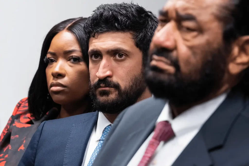 From left, Reps. Jasmine Crockett, D-Texas, Greg Casar, D-Texas, and Al Green, D-Texas, attend a news conference with members of the Texas congressional delegation to discuss possible redistricting in the state at the Democratic National Committee offices on Tuesday, July 15, 2025. Tom Williams/CQ Roll Call/Sipa USA