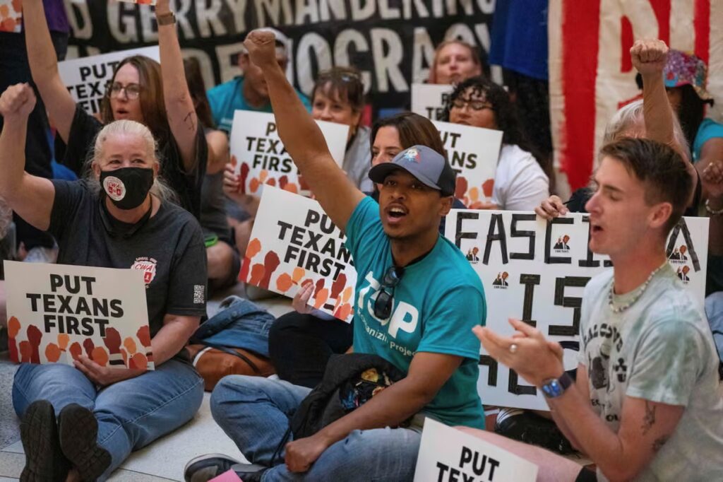 Activists protest against the redistricting at the Texas capitol in Austin on 20 August 2025. Mikala Compton/AP