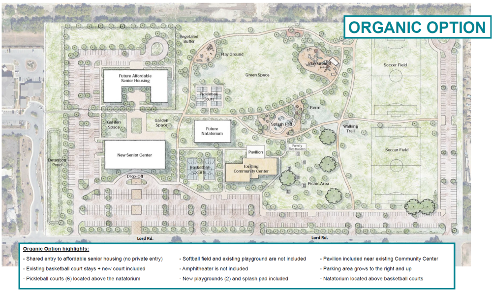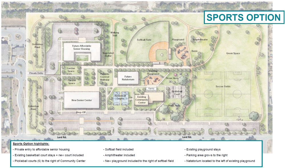 The City of San Antonio has acquired more than 12 acres at 4911 Lord Road for the development of a new senior center, affordable housing for seniors and improvements near Copernicus Park. Plans include a 30,000-square-foot senior center with parking, along with broader conceptual planning for outdoor amenities and neighborhood connectivity.