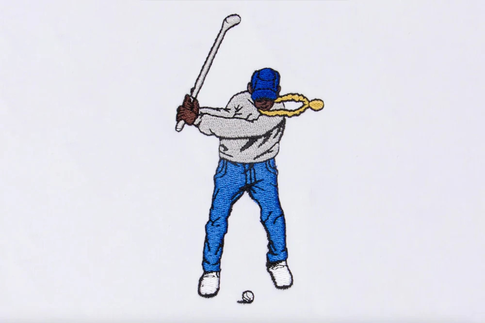 That’s the inequity Eastside Golf set out to confront. Founded in 2019 by former Morehouse teammates Olajuwon Ajanaku and Earl Cooper, the apparel company aims to flip the script by embracing culture while making golf accessible. Their signature logo, “Swingman,” features a Black man in jeans, sneakers, a cap, and a gold chain mid-swing — a direct challenge to golf’s rigid dress codes and attitudes.