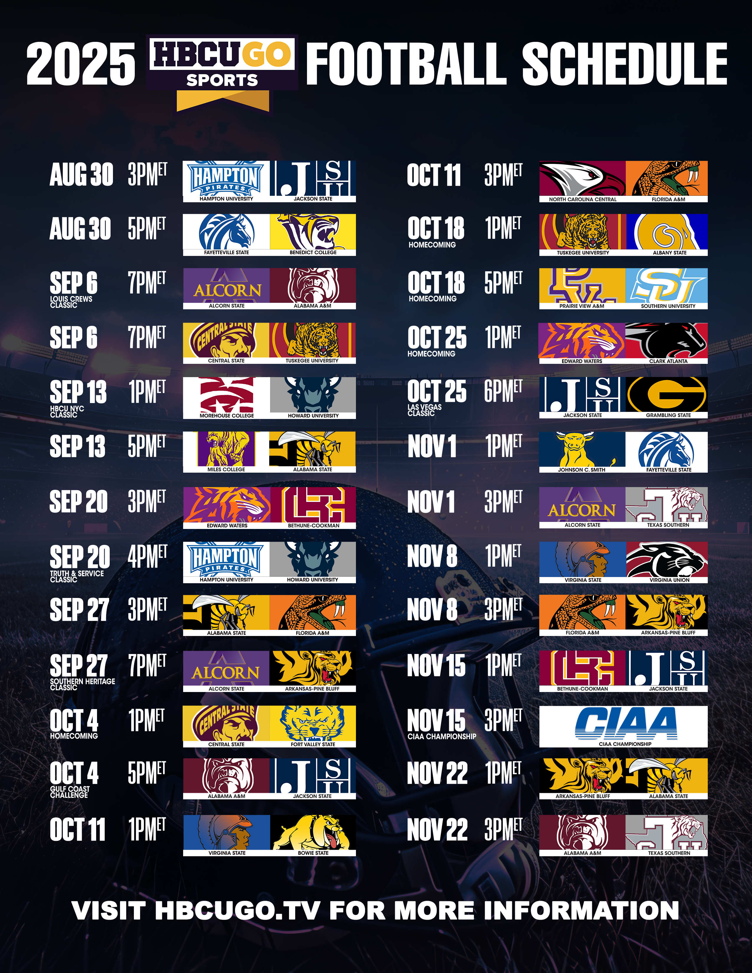 For the full schedule and streaming details, visit www.hbcugo.tv.