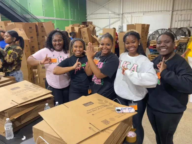 Student Ambassadors and Divine Nine Members volunteered at Second Harvest for Greeks Day of Service in October. (Courtesy of Destinee Kerr/Yahoo)