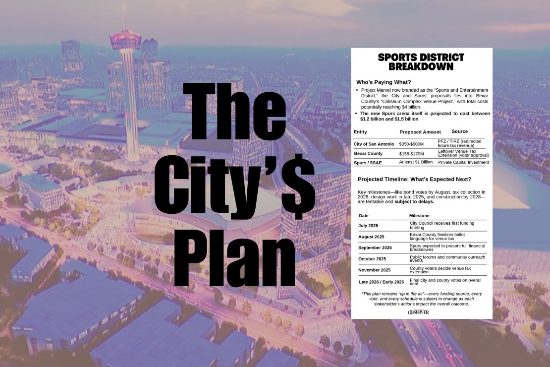 Though separate, the City’s plan and Bexar County’s proposed hotel and venue tax are aligned by geography and timing. Both could help fund parts of the arena, but neither ensures construction—any progress depends on collective alignment.