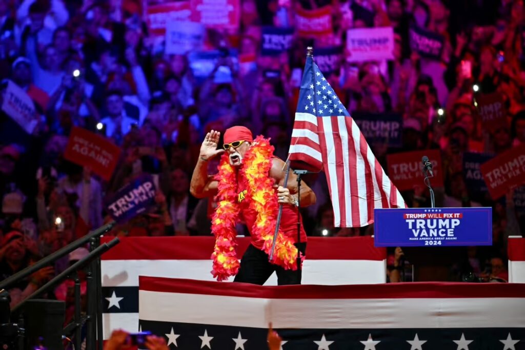 Hulk Hogan at a campaign rally for Donald Trump at Madison Square Garden in 2024. Angela Weiss | Getty Images