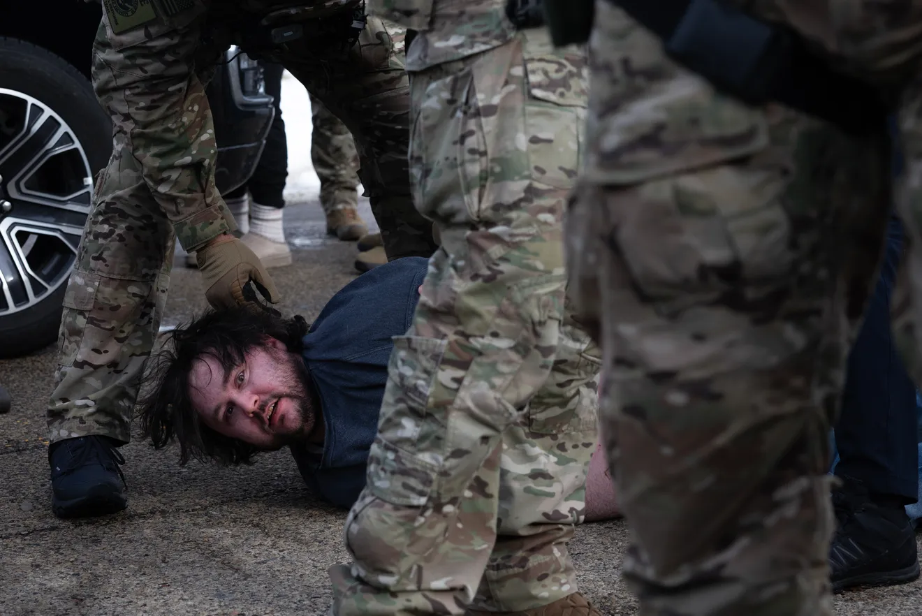Federal agents take a demonstrator into custody outside the Whipple federal building on Jan. 9, 2026 in Minneapolis, Minnesota. Protests continue in the city after a federal agent fatally shot Renee Good in her car during an incident in south Minneapolis on Wednesday. | Scott Olson, Getty Images
