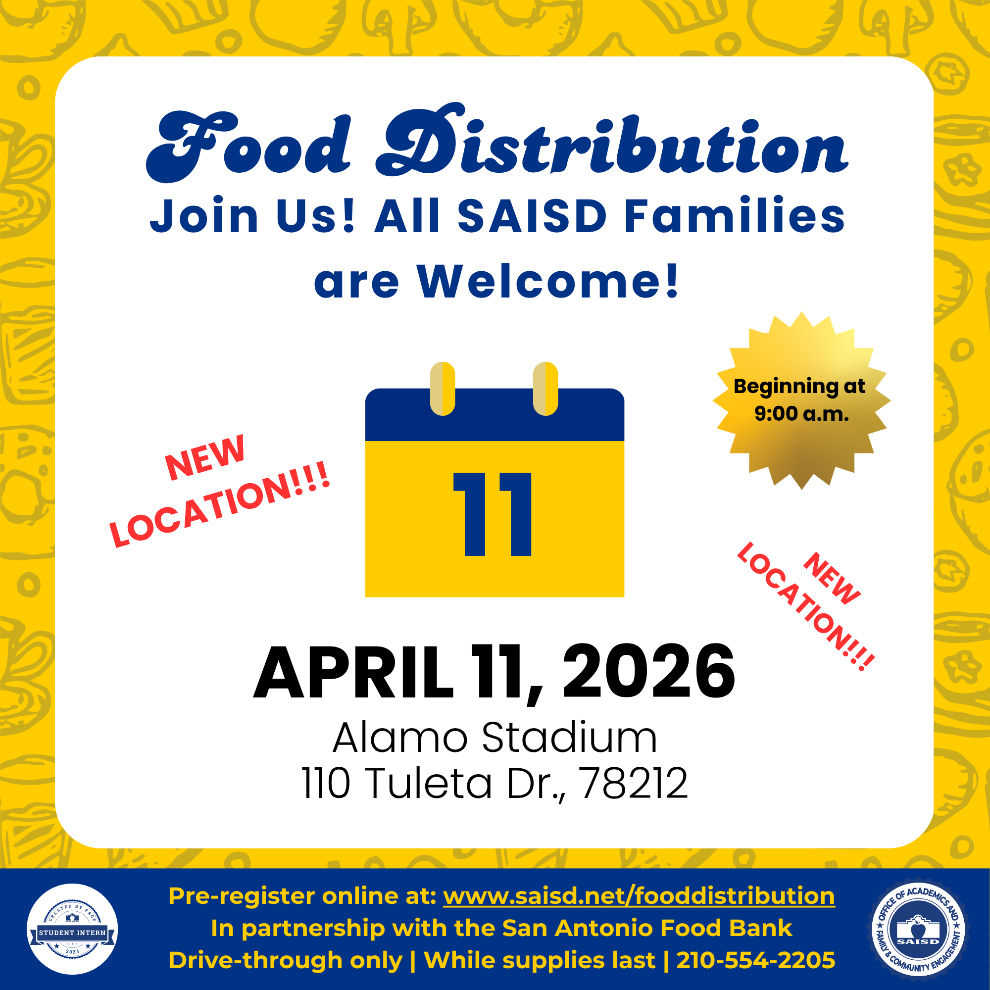 San Antonio Independent School District (SAISD) will host a free food distribution event for families on Saturday, April 11, offering support to households across the district.