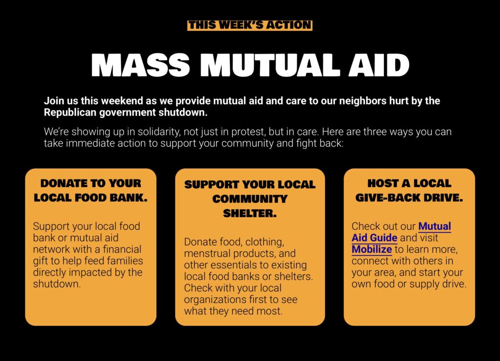As federal food assistance is set to expire November 1, the No Kings Alliance is calling on communities across the country to step up with local aid for those affected. The end of the Supplemental Nutrition Assistance Program (SNAP) will cut benefits for approximately 42 million Americans, including 16 million children and 8 million seniors.